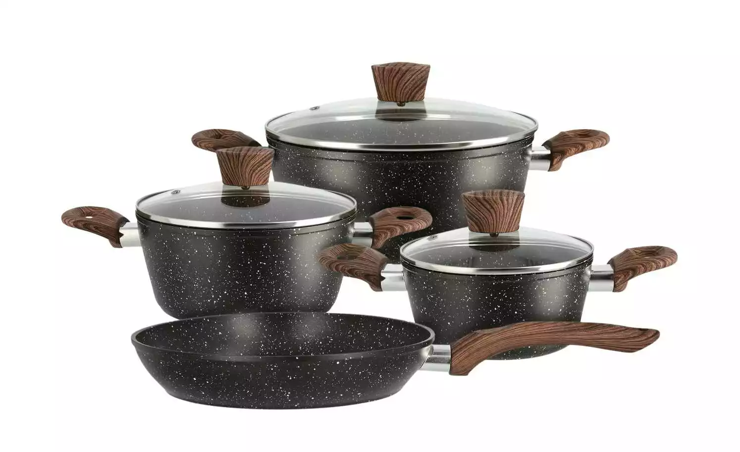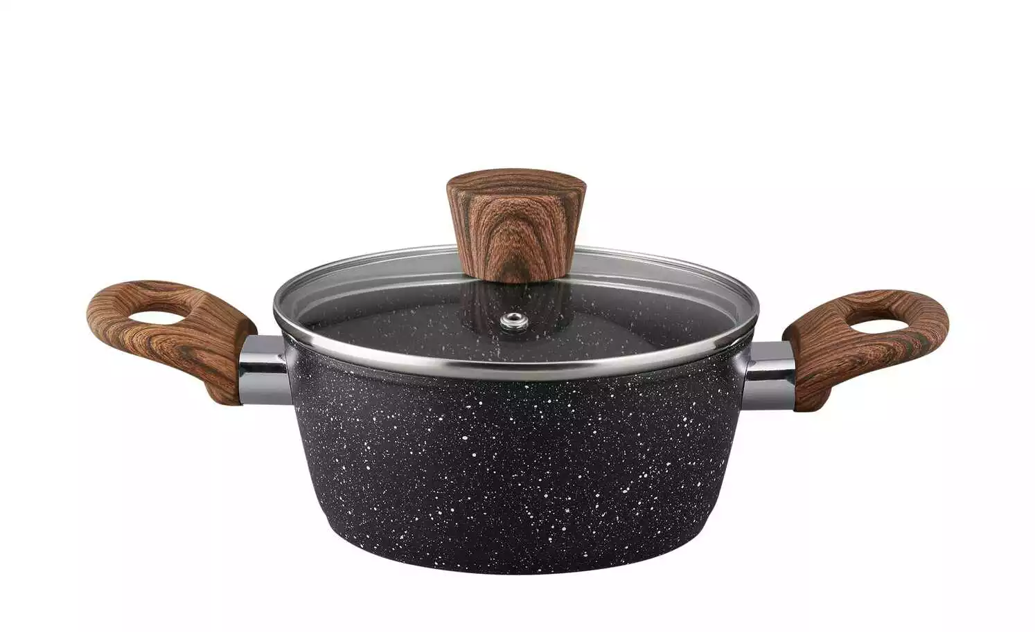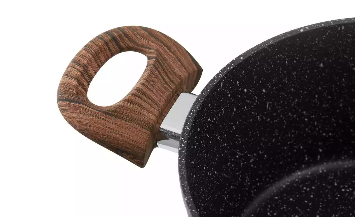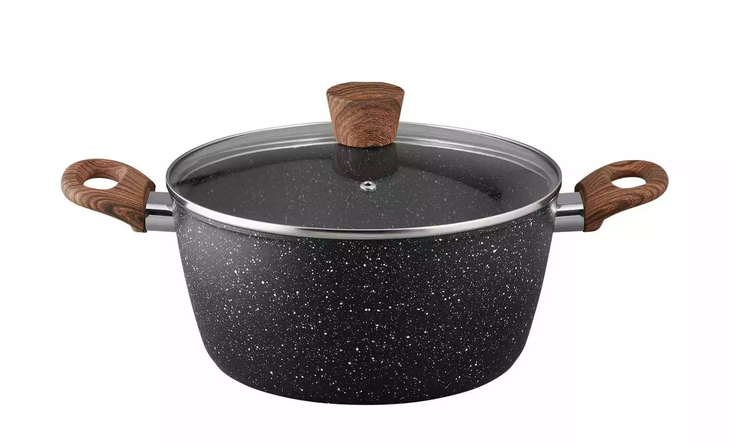 Dieses edle Topfset ist der Star in jeder Küche. Die Griffe in Holzoptik und die Marmorbeschichtung sind ein Blickfang. Das geschmiedete Aluminium ist besonders fest und haltbar, durch die Antihaftbeschichtung wird ein Anbraten verhindert. Die gute Wärmeleiteigenschaften sorgen für schnelles Erhitzen und langes Speichern der Wärme.