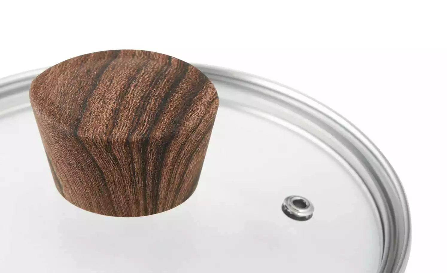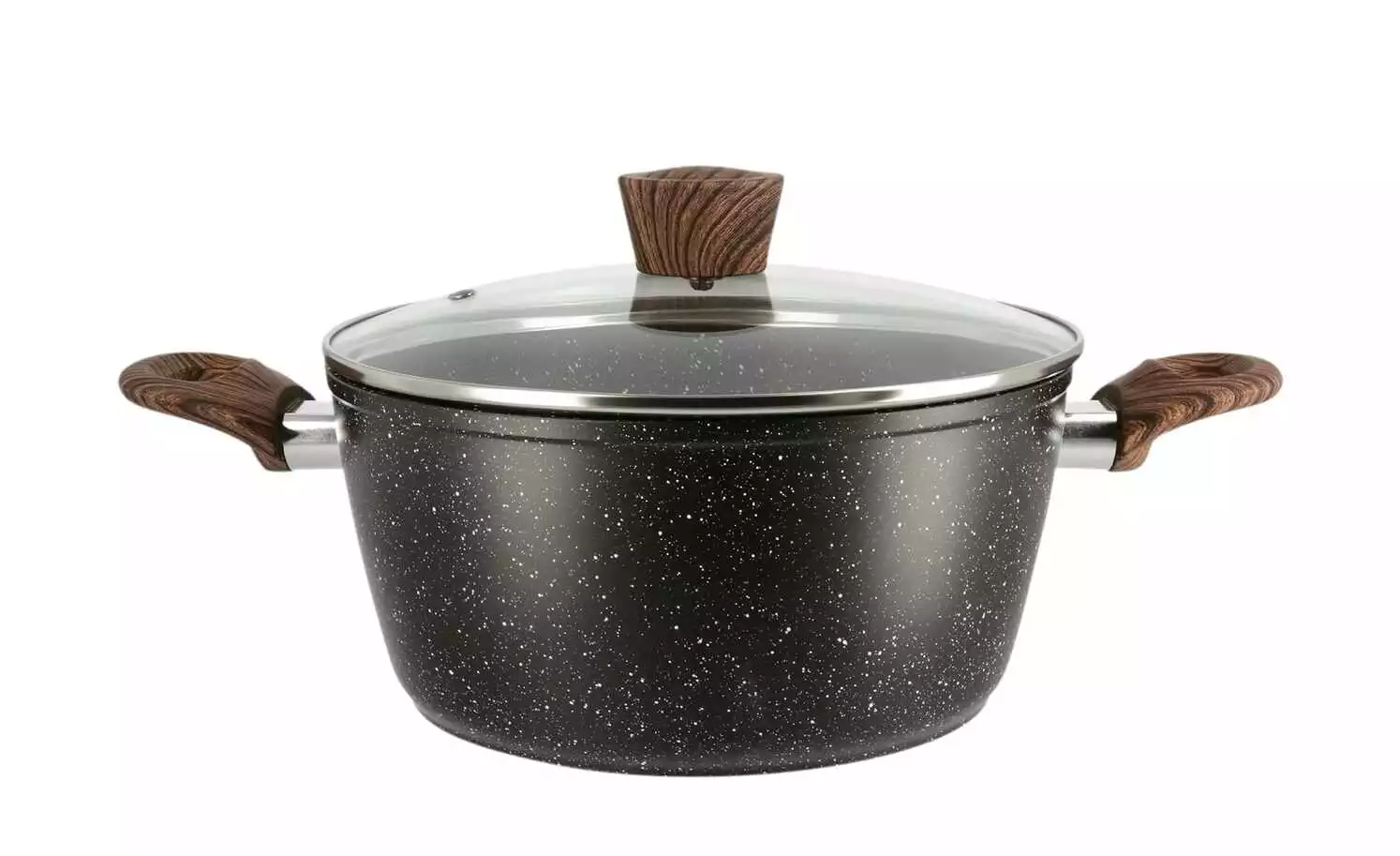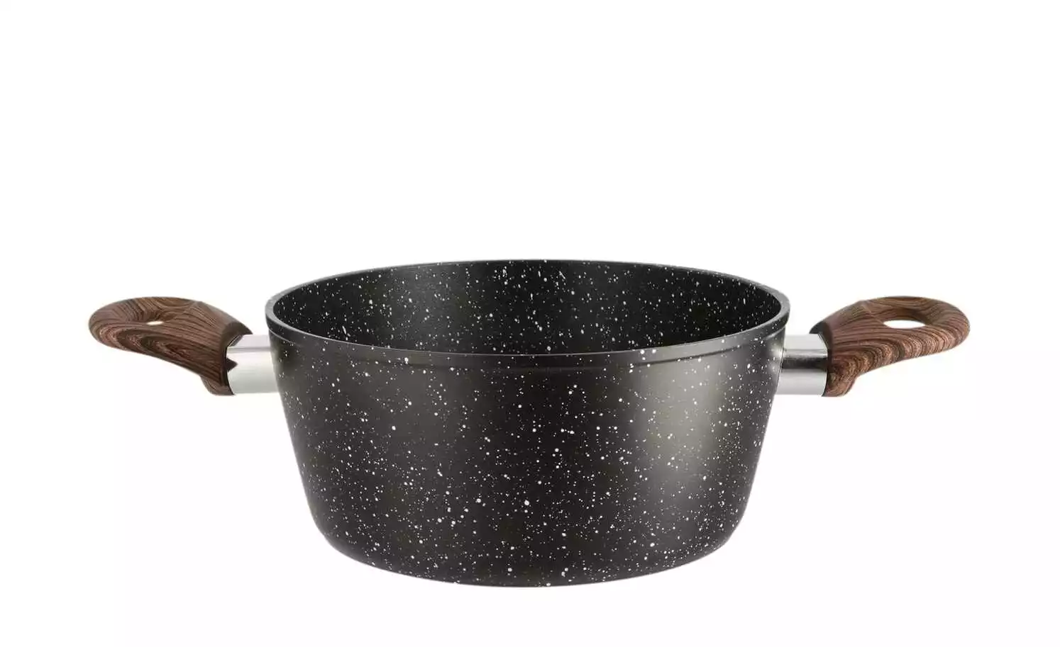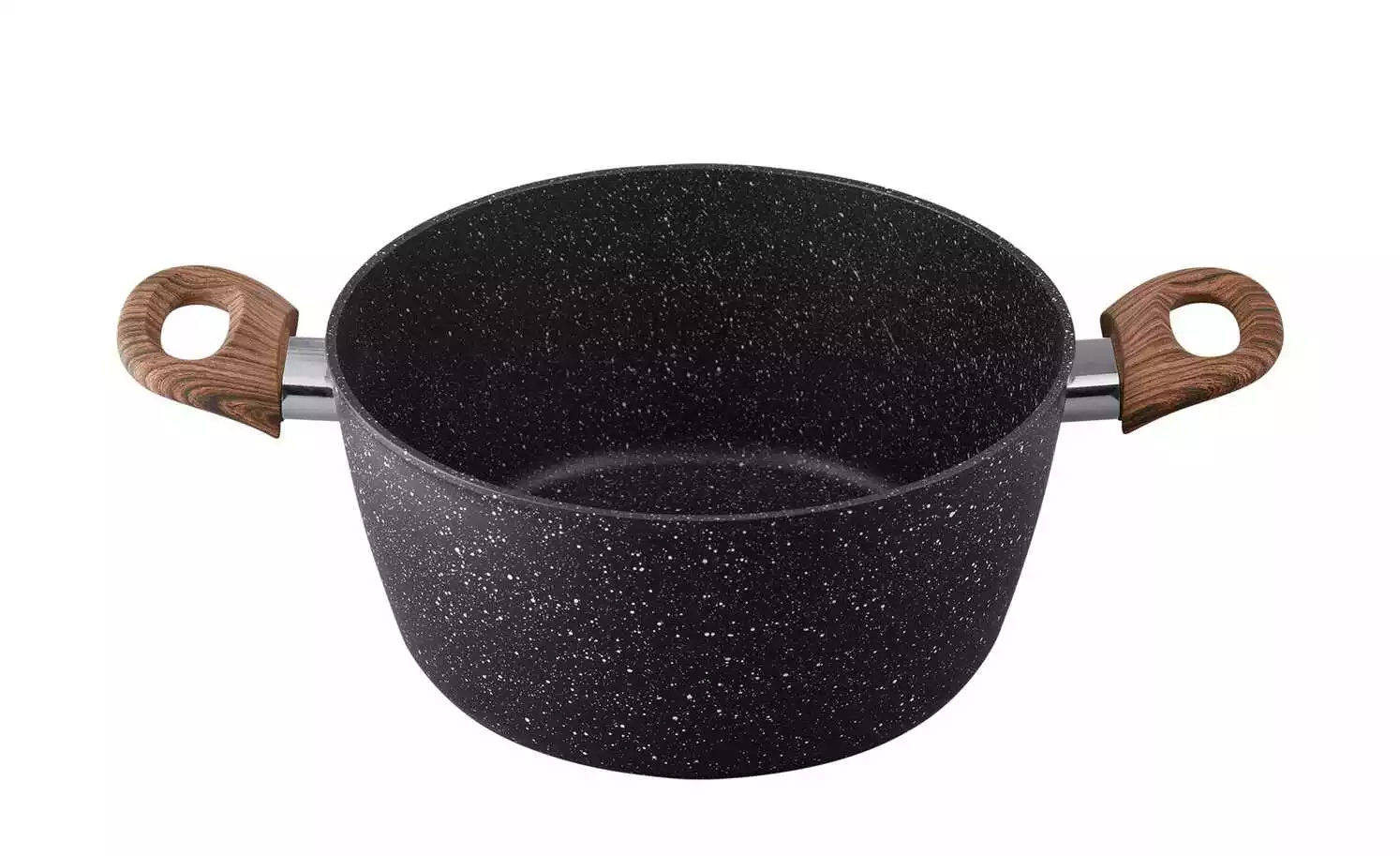Dieses edle Topfset ist der Star in jeder Küche. Die Griffe in Holzoptik und die Marmorbeschichtung sind ein Blickfang. Das geschmiedete Aluminium ist besonders fest und haltbar, durch die Antihaftbeschichtung wird ein Anbraten verhindert. Die gute Wärmeleiteigenschaften sorgen für schnelles Erhitzen und langes Speichern der Wärme.