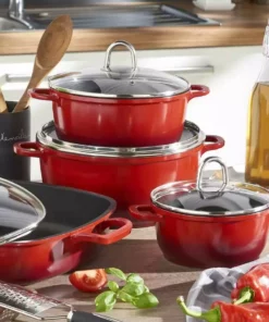 - Lieferumfang / mitgeliefertes Zubehör: 1x Kochtopf Ø 16 cm mit Deckel, 1x Kochtopf Ø 24 cm mit Deckel, 1x Bratpfanne Ø 24 cm, 1x Kochtopf Ø 20 cm mit Deckel
