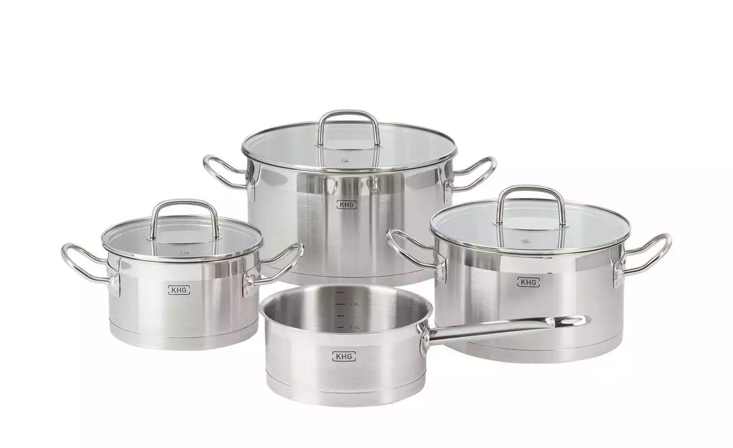 Mit diesem Topfset ist Ihre Küche gut gerüstet. Drei Töpfe in verschiedenen Größen und eine Kasserolle sind alles, was im Haushalt zum Kochen benötigt wird.