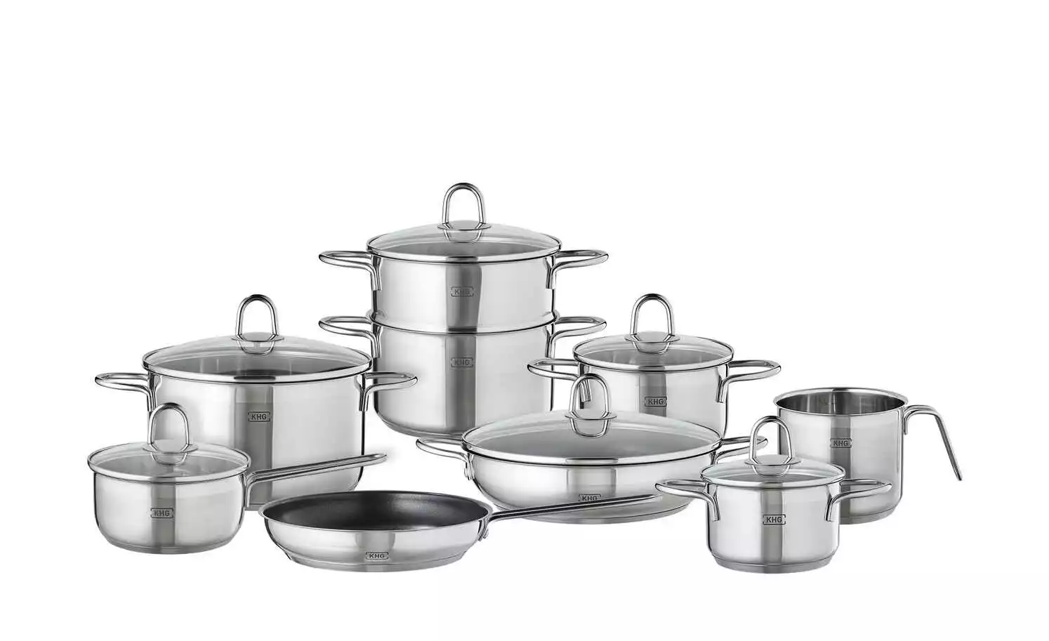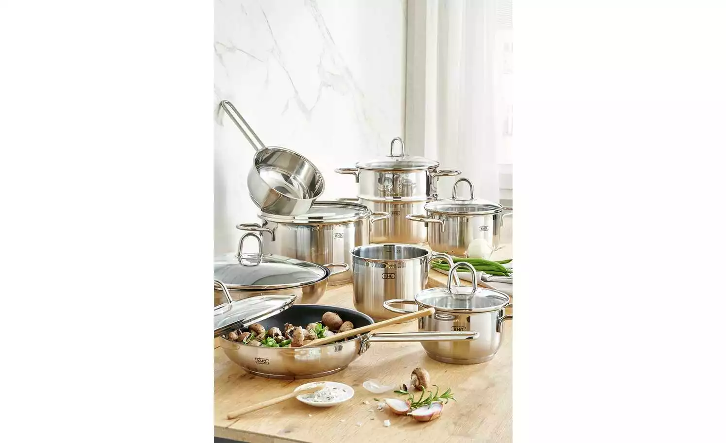 - Lieferumfang / mitgeliefertes Zubehör: 1x Stielkasserolle Ø 16 cm Deckel, 1x Milchtopf Ø 14 cm, 1x Bratpfanne Ø 24 cm antihaftbeschichtet, 1x Kochtopf Ø 16 cm mit Deckel, 1x Servierpfanne Ø 28 cm antihaftbeschichtet mit Deckel, 1x Kochtopf Ø 14 cm mit Deckel, 1x Kochtopf Ø 20 cm mit Deckel, 1x Kochtopf Ø 24 cm mit Deckel, 1x Dämpfeinsatz Ø 20 cm