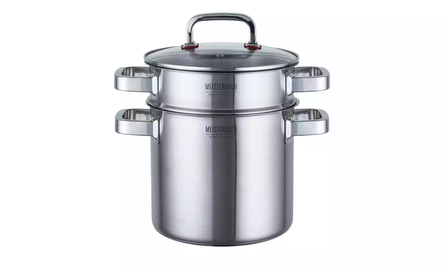 Der Spaghettitopf von MEISTERKOCH besteht aus zwei Topf-Einheiten und einem Glasdeckel. Die beiden Töpfe bestehen aus hochwertigem Edelstahl und sind dadurch langlebig und robust. Der untere Topf besitzt eine praktische Innenskalierung in 0,5er-Schritten. Der obere Topf fungiert als Nudelsieb und kann ganz einfach auf den unteren Topf aufgesteckt werden. Beide Töpfe erlauben durch ihren breiten Schüttrand ein tropffreies Ausgießen. Der mitgelieferte Glasdeckel passt sowohl auf den unteren, als auch auf den oberen Topf. Der Spaghettitopf ist spülmaschinenfest und dadurch einfach zu reinigen.