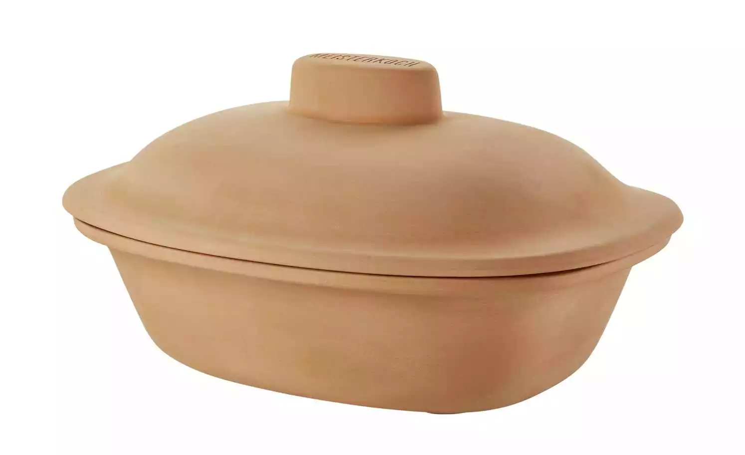 - Dank der Materialeigenschaften von Ton werden Zutaten mit unterschiedlichen Garzeiten zeitgleich auf den Punkt fertig