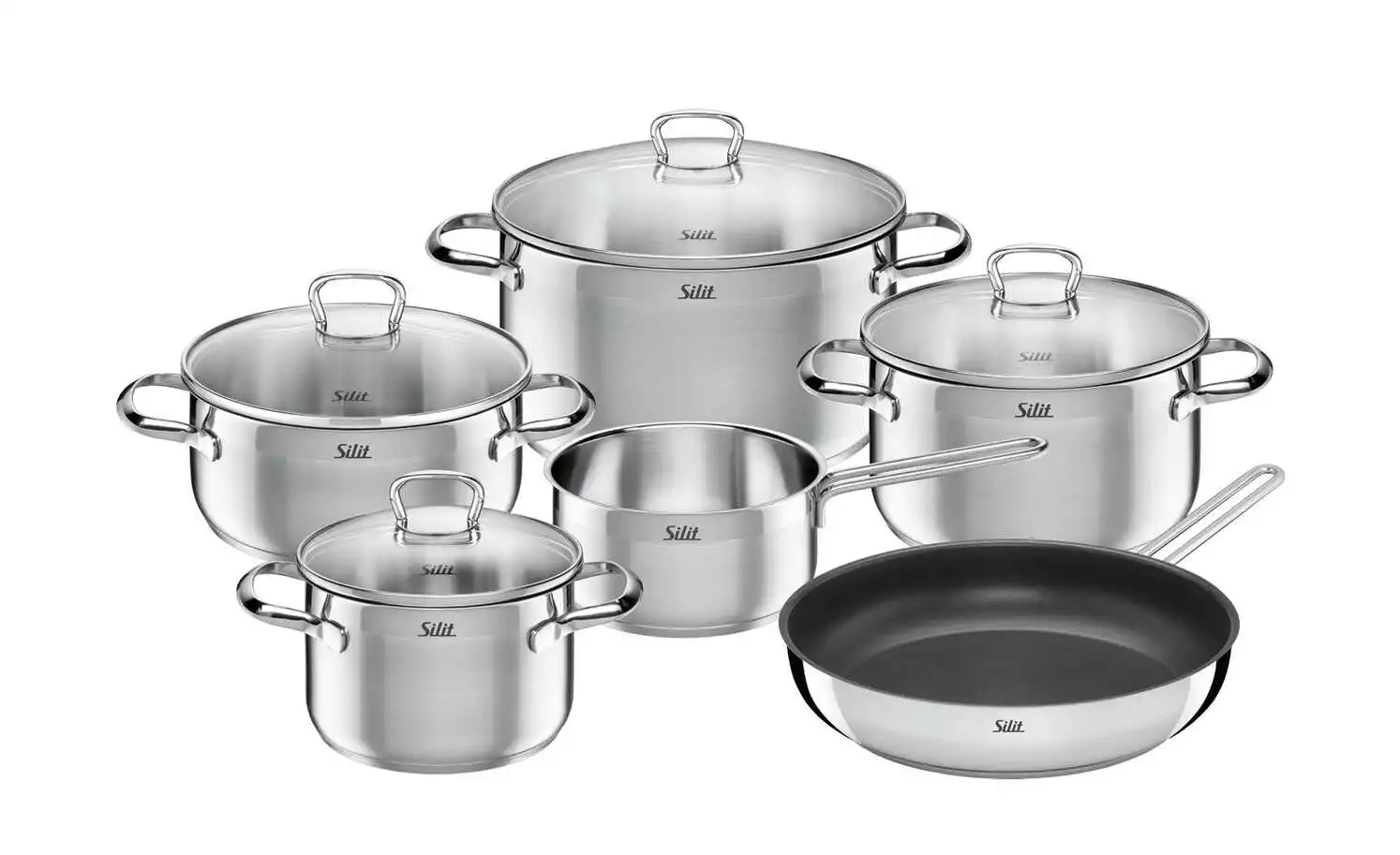 - Lieferumfang / mitgeliefertes Zubehör: 1x Stielkasserolle ohne Deckel Ø 16 cm (1,5l),, 3x Fleischtopf mit Deckel Ø 16 cm (1,9l), Ø 20 cm ( 3,3l), Ø 24 cm ( 5,7l), 1x Pfanne hoch Ø 28 cm beschichtet, 1x Bratentopf mit Deckel Ø 20 cm (2,5l)